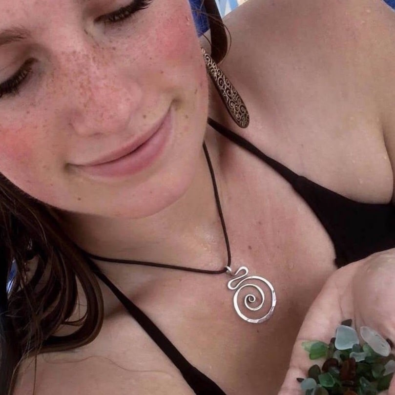 This sexiness of the Wanderlust necklace will follow you wherever you go. Hand forged from .925 sterling silver with 2 weight options, ‘Regular’ and ‘Bold’ (Bold contains 50% more silver). The Wanderlust Spiral is hung on black woven linen cord. Each necklace closes with a spiral hook clasp made in house. *Pair with ‘Tidal’ earrings!*